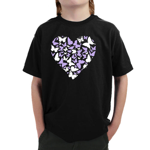 Butterfly Heart - Boy's Word Art Long Sleeve T-Shirt