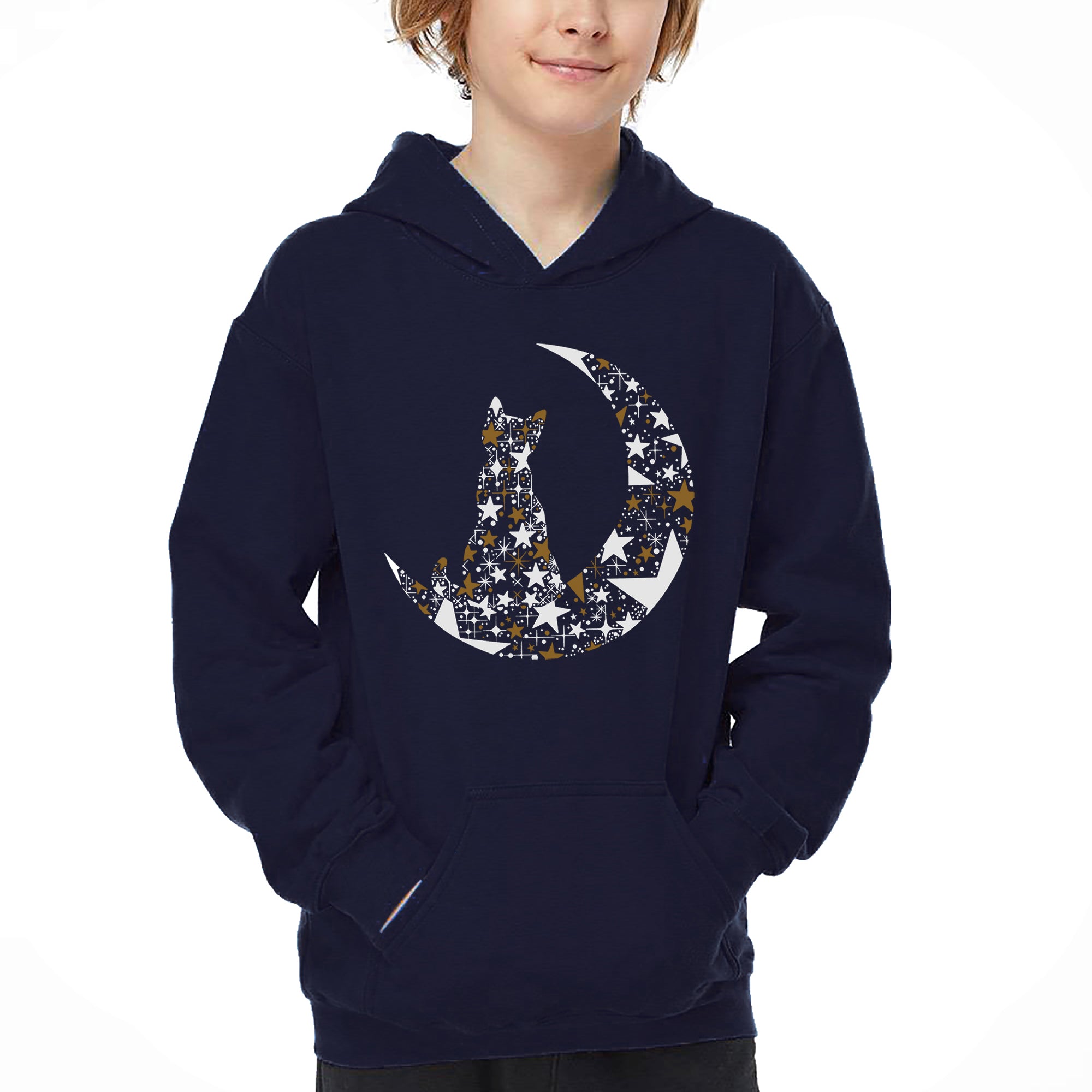 Cat Sitting On Moon - Boy's Word Art Hooded Sweatshirt