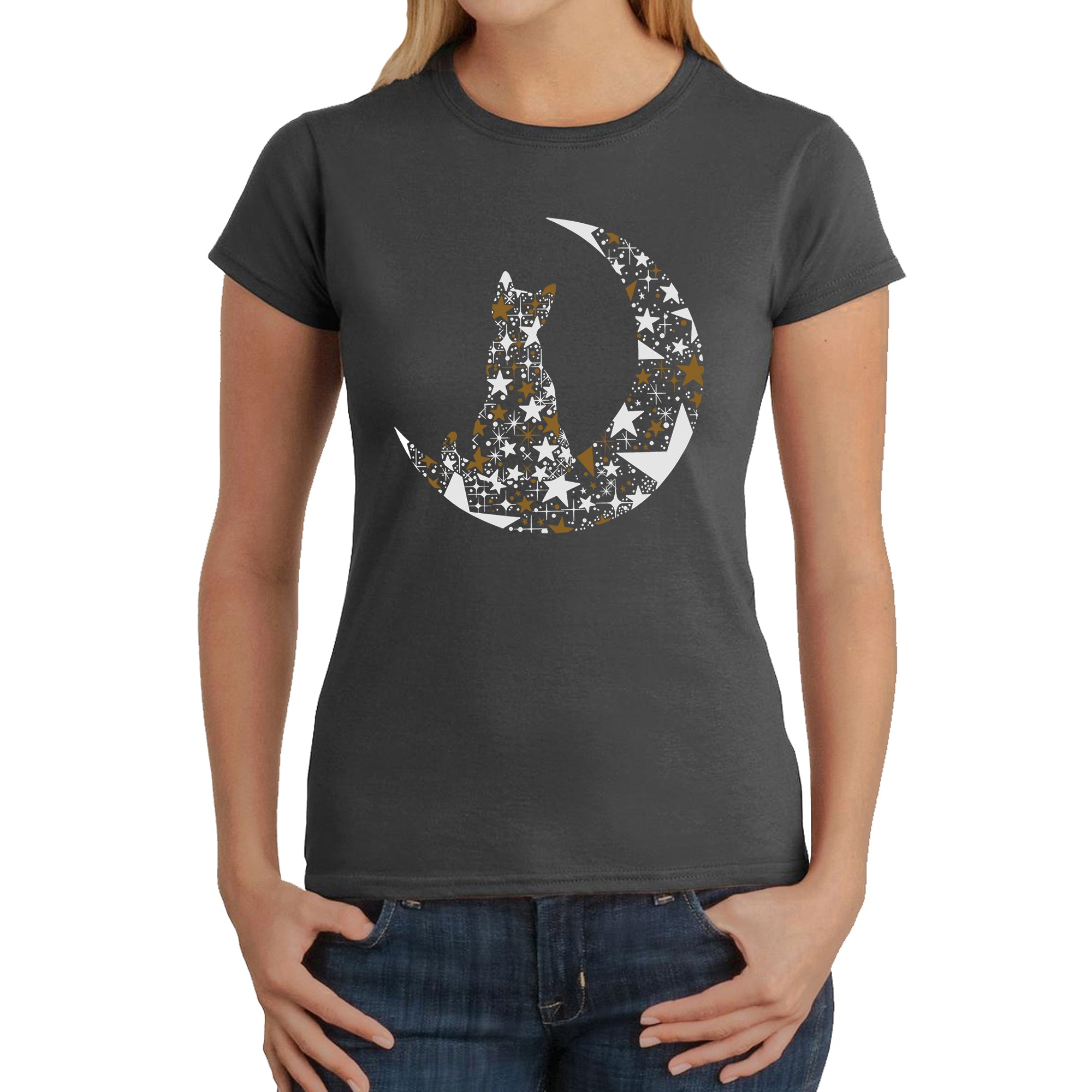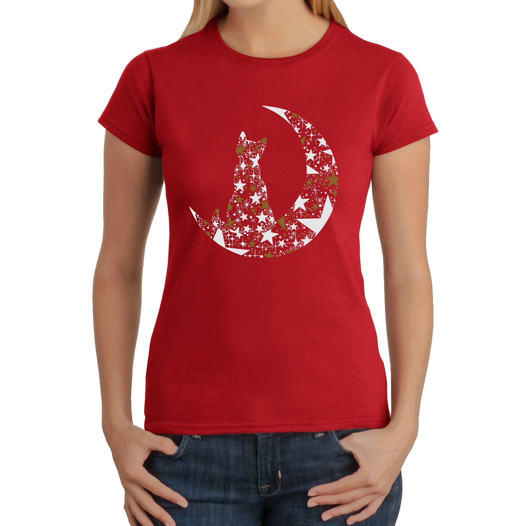 Cat Sitting On Moon - Women's Word Art T-Shirt