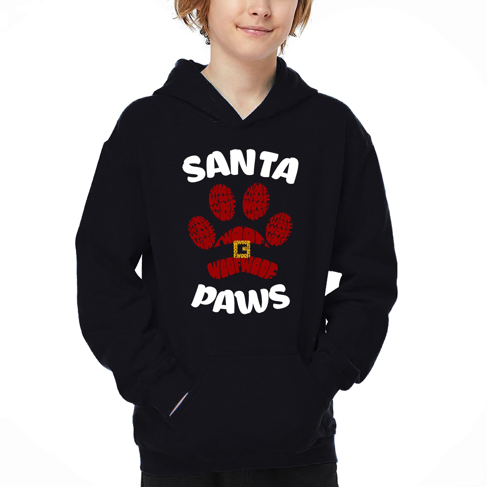 Santa Paws - Boy's Word Art Hooded Sweatshirt