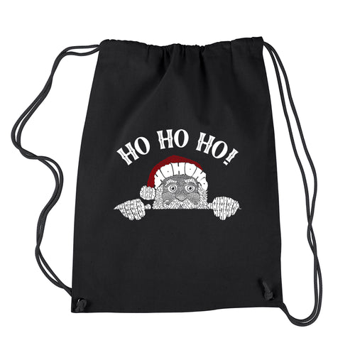 Peeking Santa - Drawstring Backpack