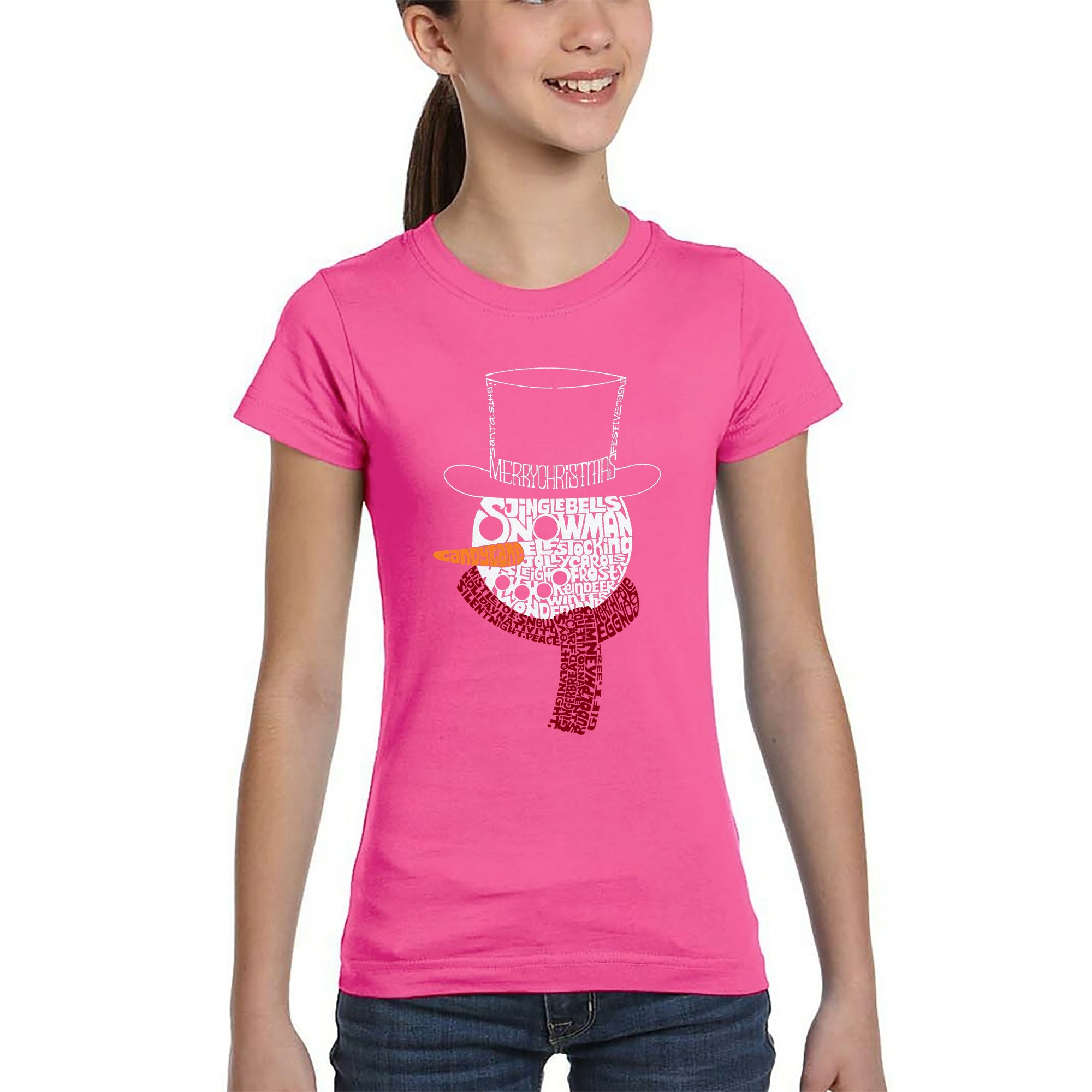 Snowman Face - Girl's Word Art T-Shirt