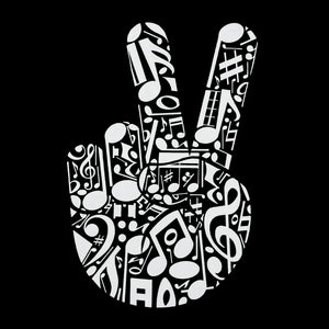 This vibrant design features a hand giving the iconic peace sign, created entirely from flowing music notes. It’s the perfect blend of musical spirit and the universal message of peace, making it ideal for music lovers and anyone who believes in spreading positivity. Whether you're jamming to your favorite tunes or just embracing good vibes, this design is a creative and stylish way to share your love for both music and peace. Wear it proudly and let your message resonate!