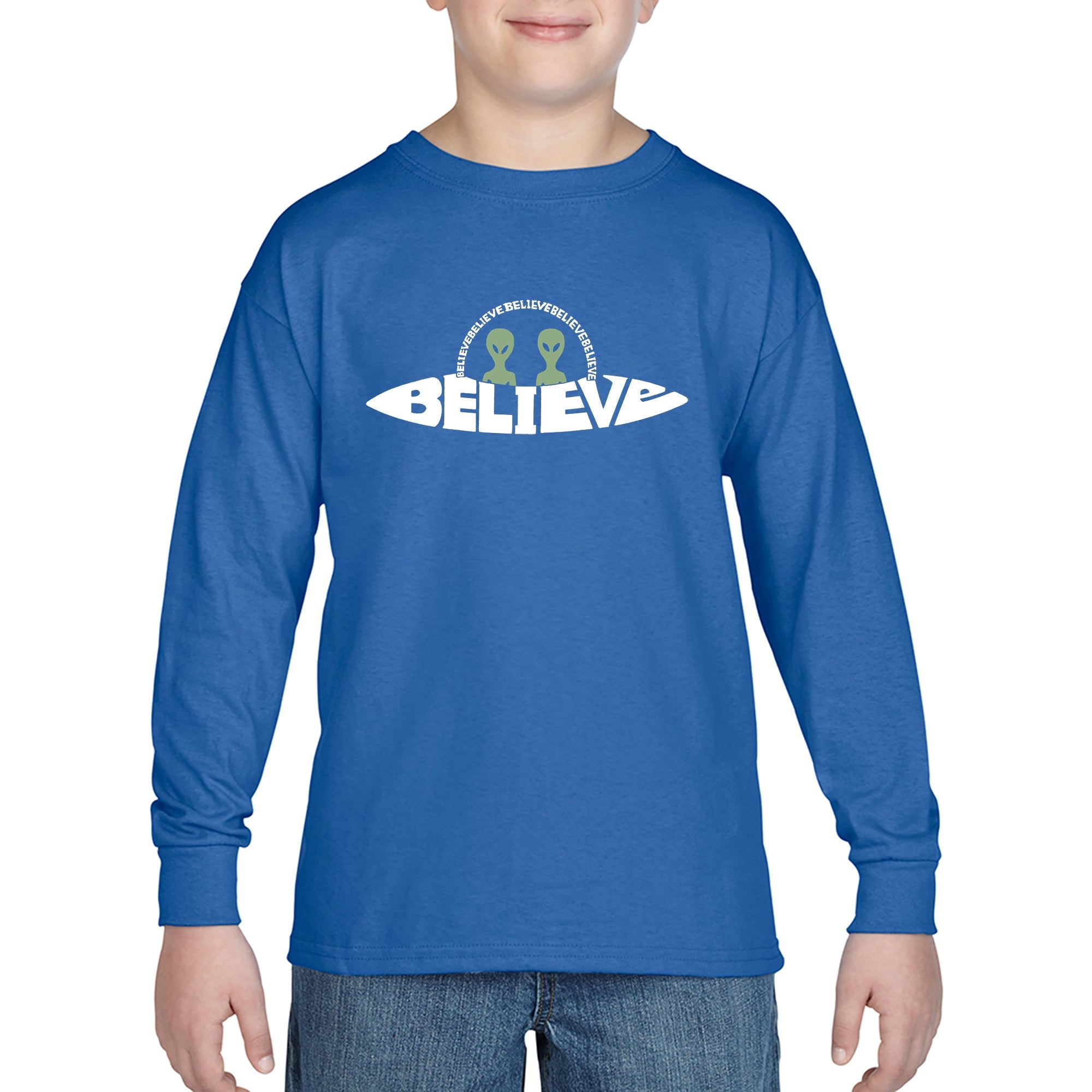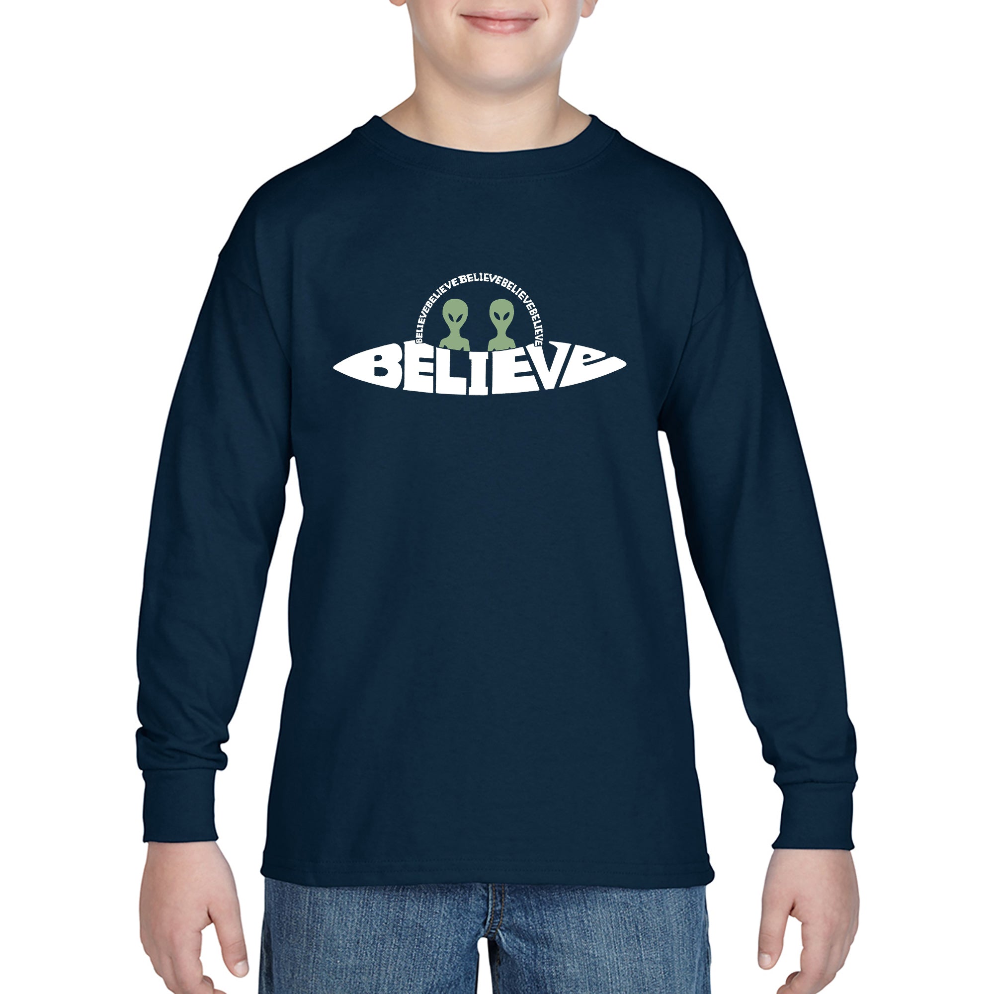 Believe UFO - Boy's Word Art Long Sleeve T-Shirt