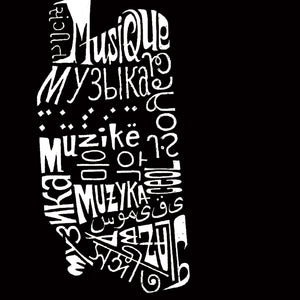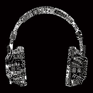 Created using the word Music in different languages In many countries and cultures, music is an important part of their way of life. Music speaks to everyone universally no matter what country you are from or what language you speak. That is why we created this headphones design out of the word "music" in many different languages.
