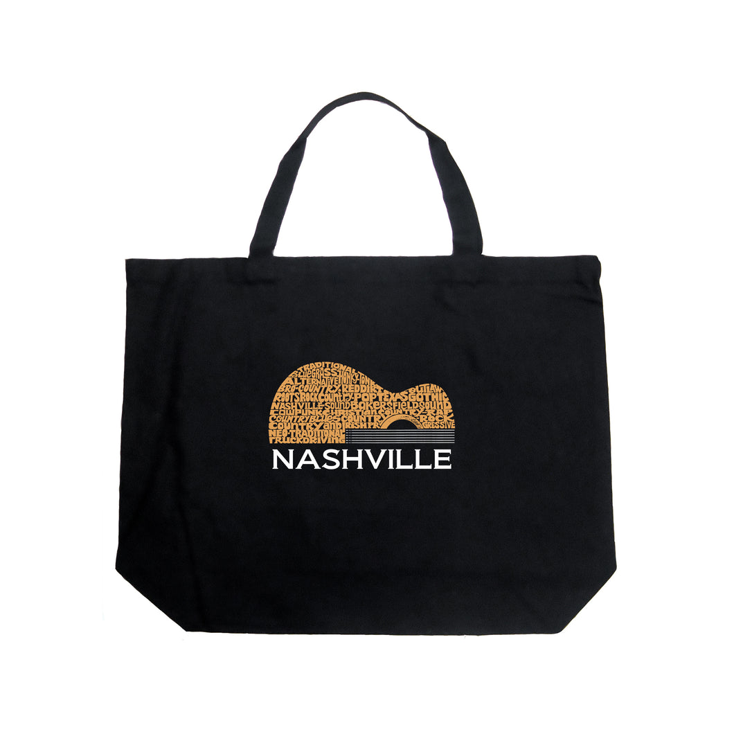 Nashville Guitar - Large Word Art Tote Bag